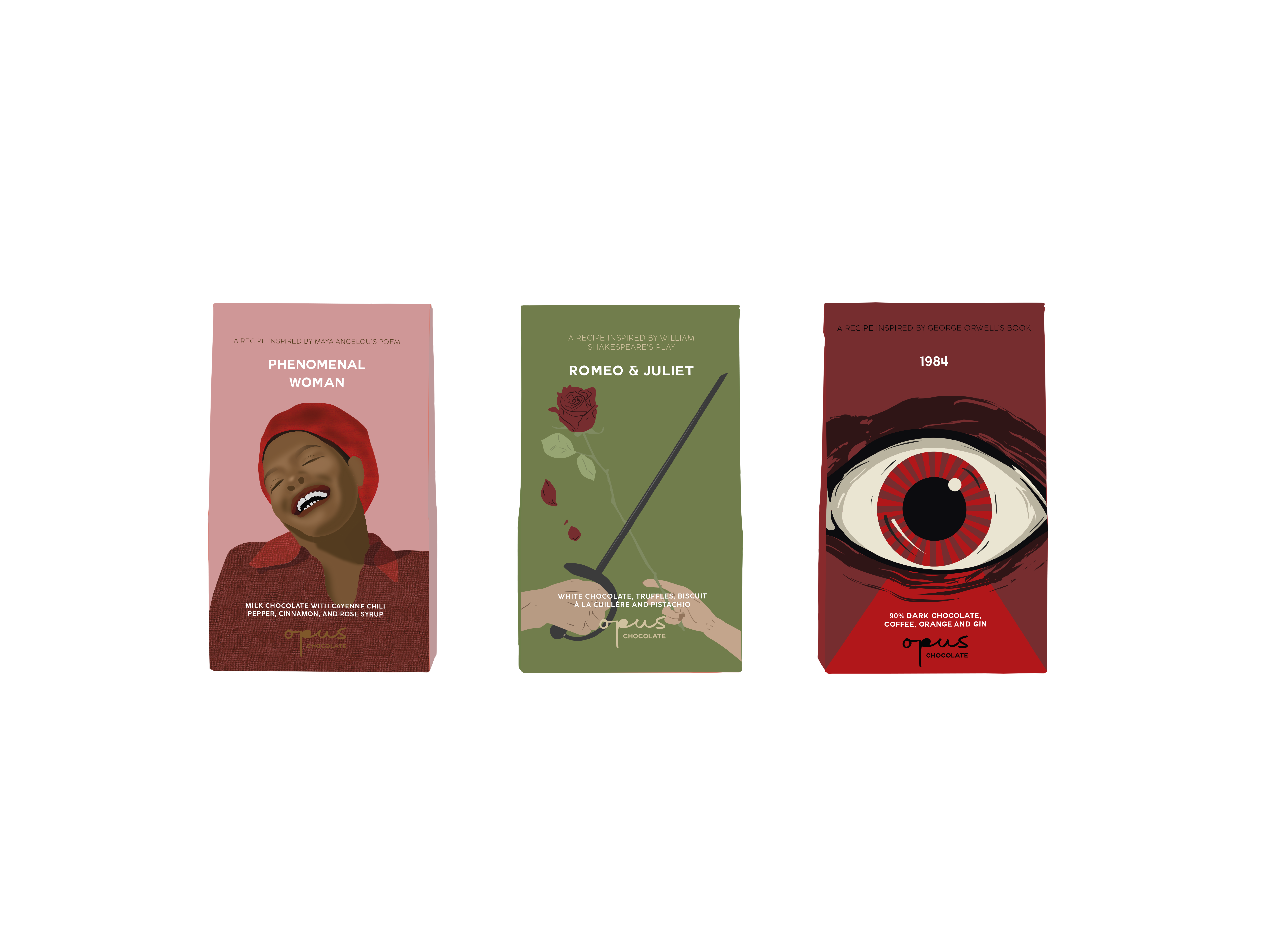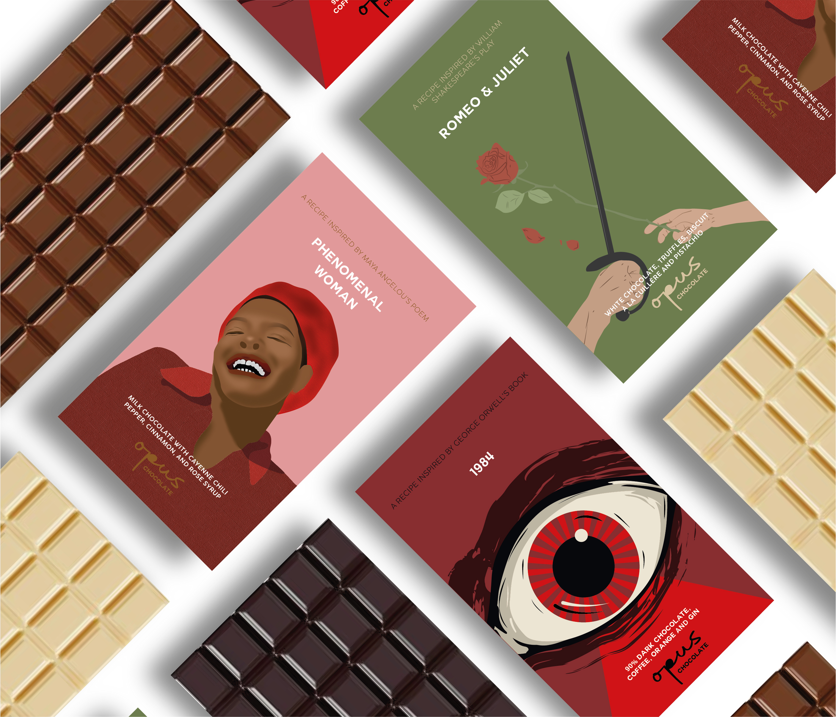 Is a brand of creative chocolate bars ispired by some of the greatest works of literature. The recipes are very original and it aims to democratize literature, make it fun and enternaining by associating it with eating chocolates. Vice versa, the use of literature imply the quality, originalitty and creativity of the recipes, as if the chocolate were themselves masterpieces.